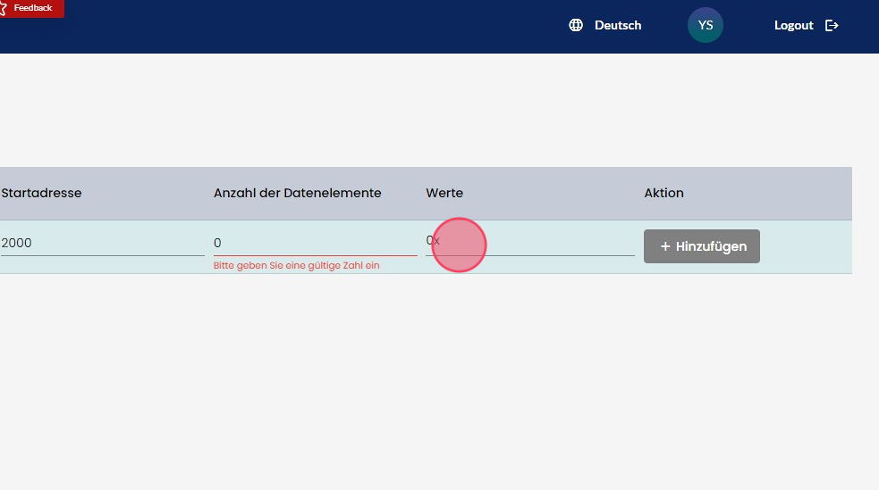 Tragen Sie den Wert, den Sie in die ausgewählte Adresse schreiben wollen ein.