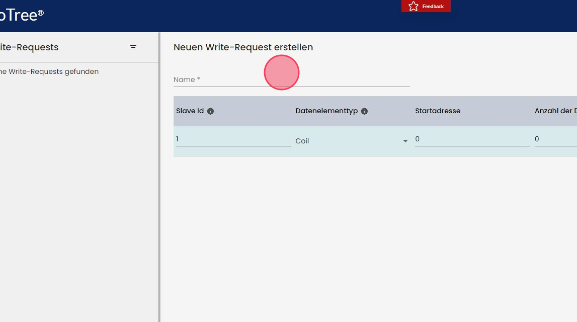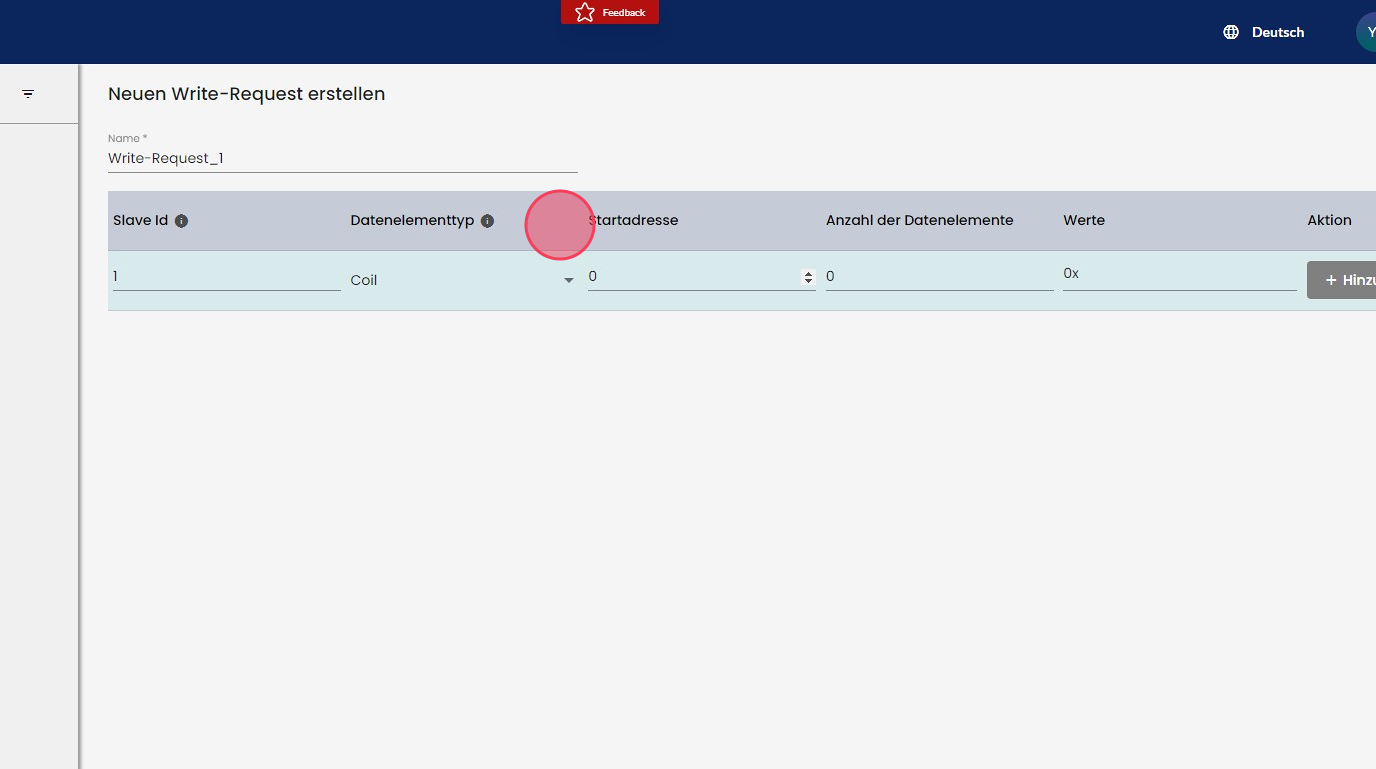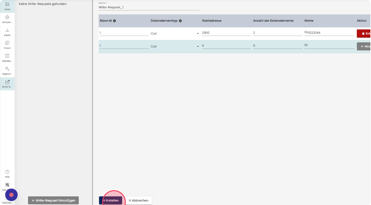 Mit Klick auf "Write-Request hinzufügen" können Sie eine neue benutzerdefinierte Write-Request anlegen.