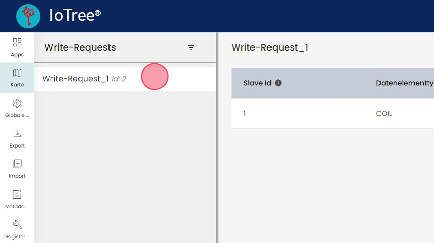Der Write-Request ist nun mit der "Id" im System hinterlegt und kann im nächsten Schritt an die MOV3 übermittelt werden. Folgen Sie dazu der Anleitung "MOV3: Downlink - Write Request setzen".