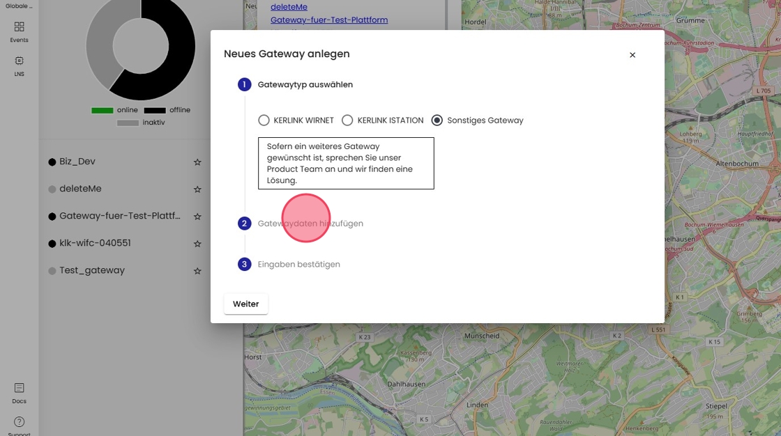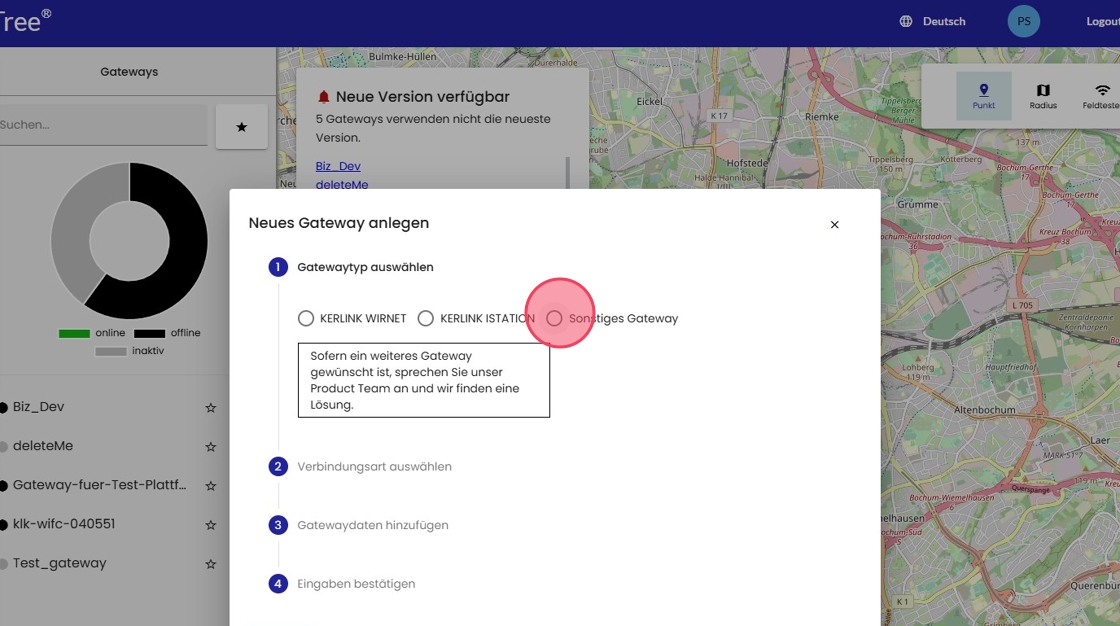 3. Sie haben die Möglichkeit neben den unterstützten Kerlink-Gateways auch andere, alternative Gateways verschiedener Hersteller in IoTree anzulegen. Klicken Sie dazu auf "Sonstiges Gateway".