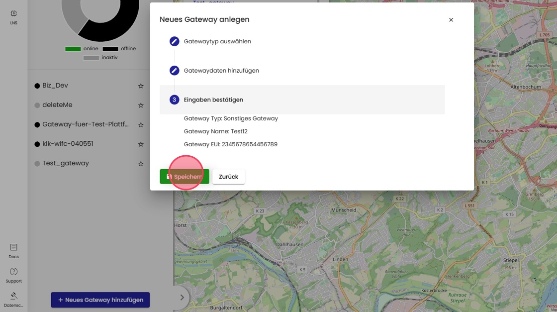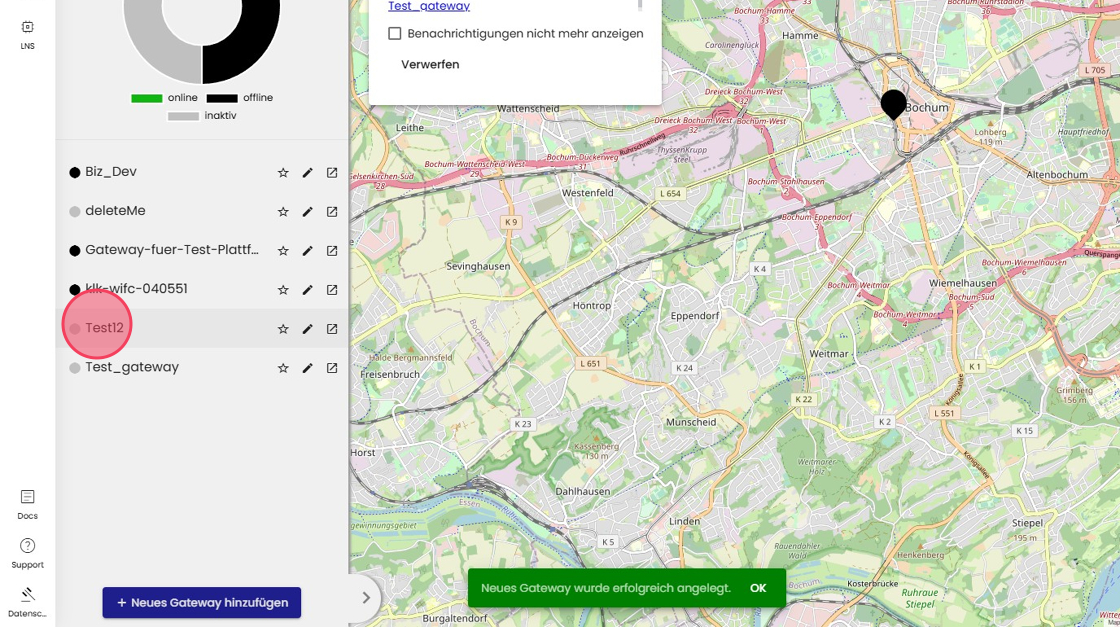 8. Ihr Gateway wurde erfolgreich in IoTree angelegt. Es wird für Sie nach der Erstellung in IoTree automatisch in Ihrem LoRaWAN-Netzwerkserver angelegt!
